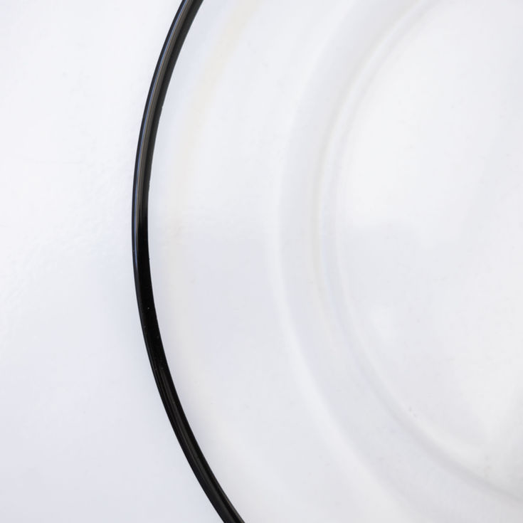 Elevate your event with Cherri Hire's exquisite Black Rim Glass Underplates. These stunning underplates are best paired with our gold cutlery and gold napkin rings.